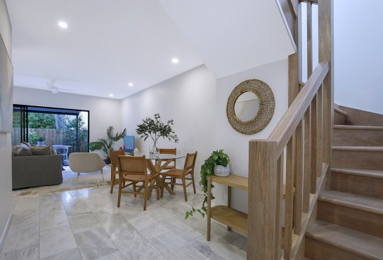 Sharing the site are two, three-level, three-bedroom townhouses with private courtyards and double garages. Their design complements the history of the Queenslander and, at the same time, offers a modern way of life.